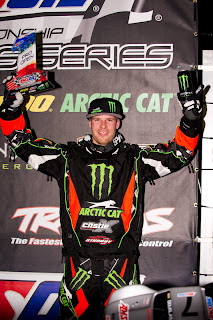 March 12, 2012 – Monster Energy/Arctic Cat’s Tucker Hibbert returned to his winning ways Saturday night at Elk River, Minnesota’s first ISOC National Snocross event. With clear skies and temperatures topping the high-50s, fans packed into Elk River Extreme Motor Park (ERX). Despite spring weather, ERX featured one of the largest racetracks the ISOC Tour had seen all winter.